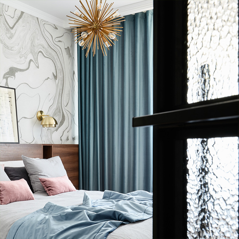 Satynowa zasłona kolory zgaszonego błękitu to zmysłowy dodatek na przykład do Twojej sypialni.